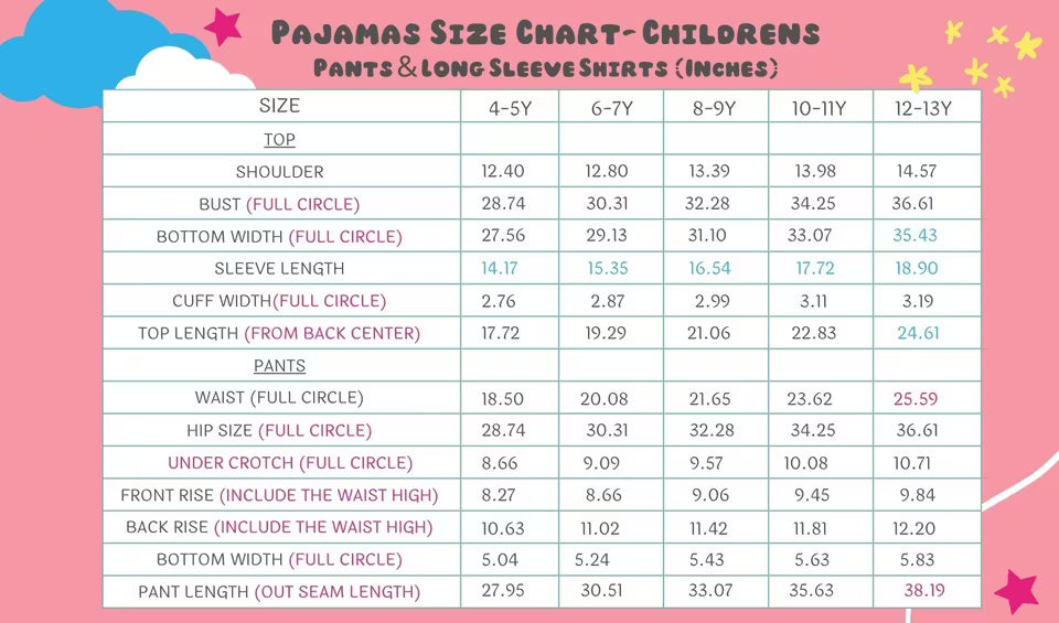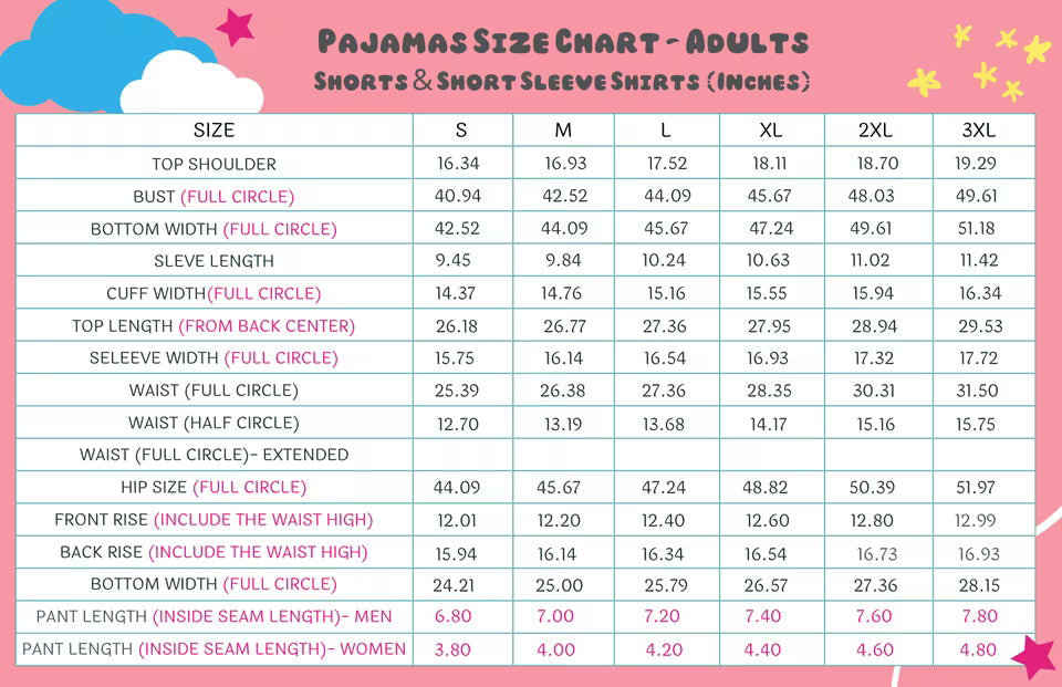 - Sizes: Small, Medium, Large, XL, 2XL, 3XL (All unisex). Kid's sizes available for long sleeve and pants only (ages 4 -13)